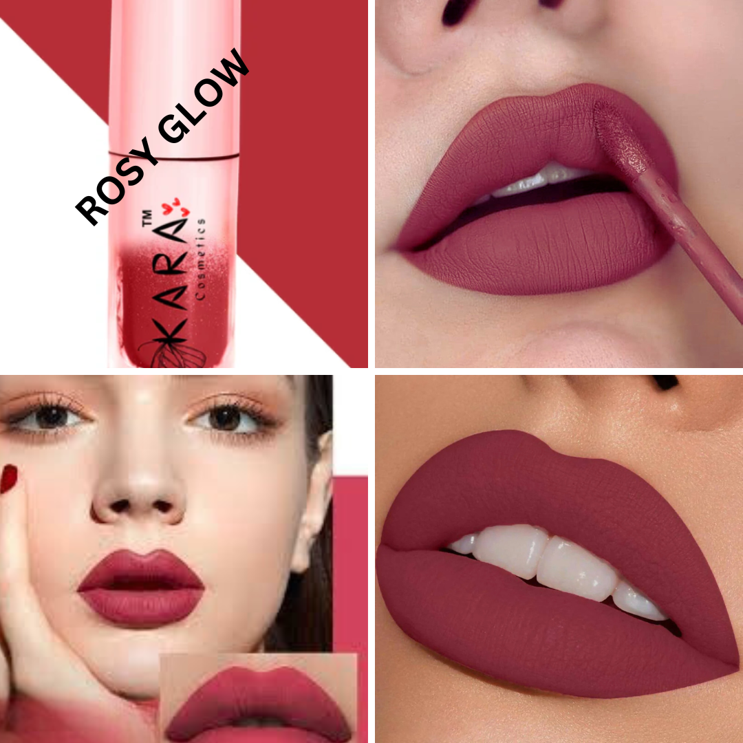 ROSY GLOW - Get the perfect kiss of color with our Rosy Glow Liquid Lipstick – a soft yet vibrant rosy hue that enhances your natural beauty. This lightweight, high-pigment formula glides on smoothly, delivering a rich, velvety finish that lasts all day. Infused with nourishing ingredients, it keeps your lips hydrated and comfortable while providing a flawless, non-drying matte look. Whether you're going for a fresh daytime vibe or an elegant evening glam, Rosy Glow is your go-to shade for effortless radiance.
